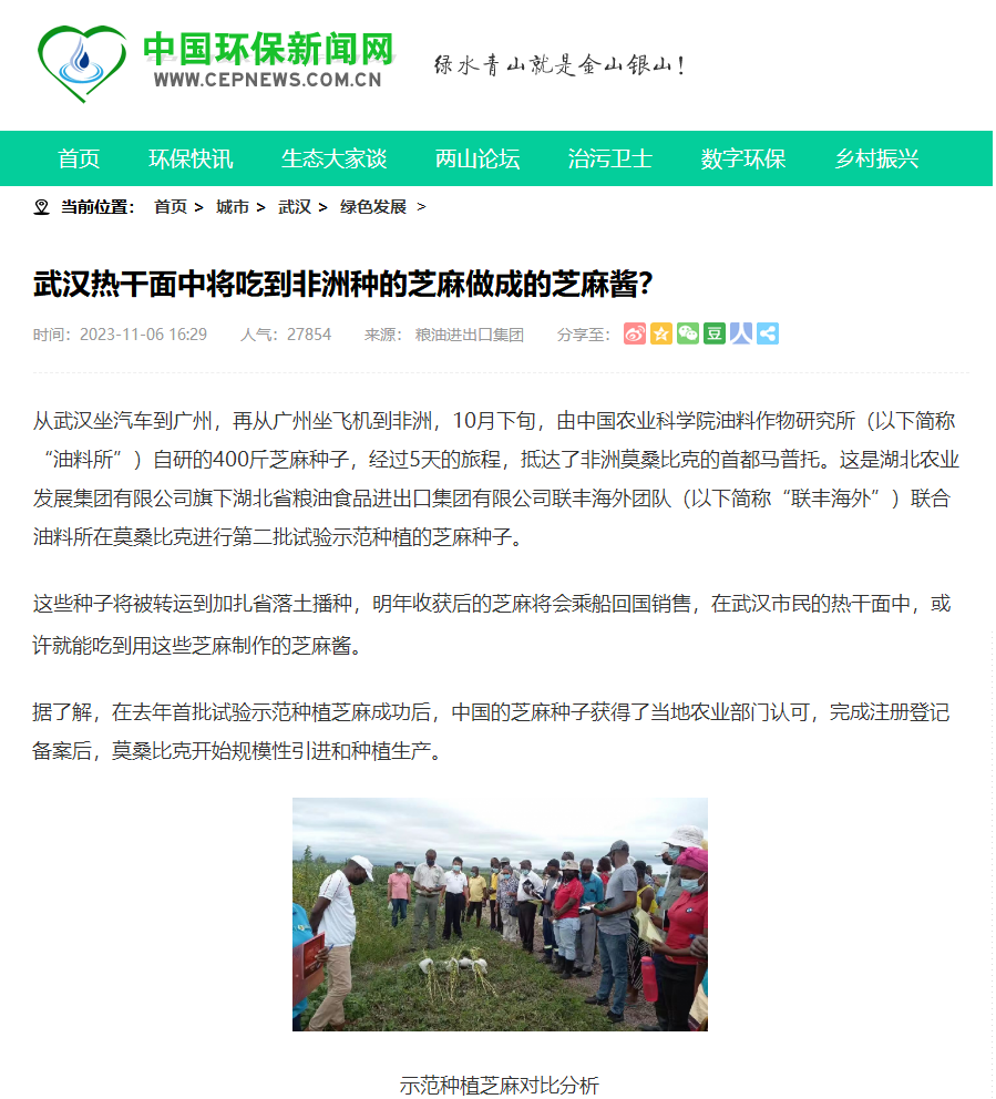 中國環(huán)保新聞網(wǎng):武漢熱干面中將吃到非洲種的芝麻做成的芝麻醬?
