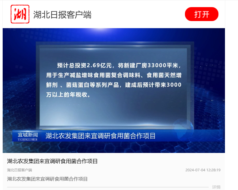 湖北日報:湖北農發集團來宜調研食用菌合作項目