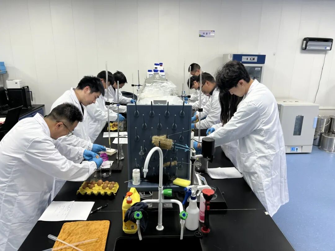 米來生物科技研發(fā)人員組成5個小組,圍繞“蛋黃收集”與“溶液標定”等環(huán)節(jié)開展技能競賽。活動從蛋黃蛋清分離與收集、精準標定未知濃度氫氧化鈉溶液等方面,考驗參賽選手的業(yè)務實操、化學實驗基本功與數據處理能力。競賽現場,選手們精準、高效完成各項任務,展現出高超技能水平和扎實專業(yè)功底。